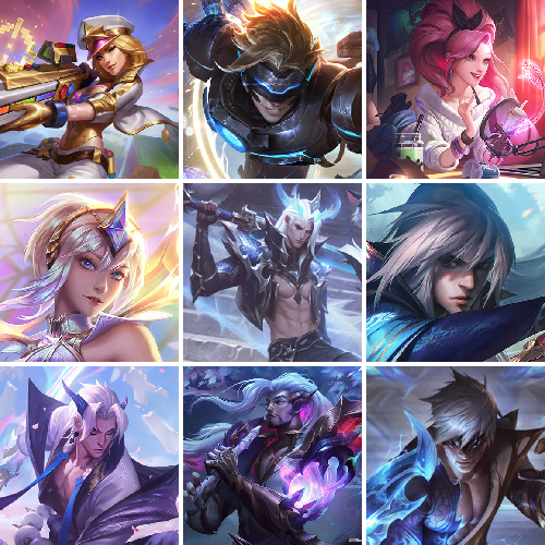 【重要皮肤】青花瓷千珏至臻 墨之影武者亚索至臻 绝息圣堂厄运小姐至臻 海珀利安小队X09星环灵风迦娜至臻 幻灵战斗猫金克丝至臻 青花瓷拉克丝至臻 战斗学院蕾欧娜至臻 魔女婕拉至臻 星之守护者索拉卡至臻 KDA二代卡莎至臻 KDA一代卡莎至臻 KDA阿狸至臻 电玩女神凯特琳至臻 源计划正义艾瑞莉娅至臻 玉剑传说武剑仙至臻 玉剑传说武剑仙2022至臻 腥红之月亚托克斯至臻 未来战士锤石至臻 未来战士锤石2022至臻 海克斯科技雷克顿 海克斯科技嘉文四世 恐惧新星德莱厄斯 零之枪骑赫卡里姆 摄魂使者薇恩 胜利女神娑娜 胜利巨口克格莫 战熊骑士瑟庄妮 养蜂人辛吉德 电玩女神厄运小姐 电玩勇者锐雯 玉剑传说无影 神凰行者幽羽玄凰萨勒芬妮 玉剑传说翼剑仙 天龙之子斯莫德 剪纸仙灵艾瑞莉娅 虎头虎脑崔丝塔娜 烈焰仙子黛安娜 龙腾虎跃瑟提 猛虎下山赵信 招财进宝提莫 你看见过我的熊猫吗安妮 北辰之威内瑟斯 南天之怒沃里克 广寒仙子嫦娥 张辽文远 金猪烈焰瑟庄妮 神龙之翼库奇 王国机神青龙德莱文 王国机神苍狼瑟提 王国机神白虎贾克斯 胜利机器人布里茨 胜利枪神格雷福斯 胜利枪神卢锡安 胜利之剑亚托克斯 幽梦玫瑰伊莉丝 甜心宝贝安妮 觅心女王艾希 水晶玫瑰斯维因 北极星神黛安娜 持胡萝卜的雪人易 平安夜女神娑娜 圣诞糖果棒厄运小姐 魅惑女巫奈德丽 魅惑女巫伊莉丝 大魔法锅布里茨 大魔王提莫 死亡誓约卡特琳娜 海之歌萨勒芬妮 泳池派对佐伊 泳池派对格雷福斯 电玩战魂赫卡里姆 斩星魔剑易 鸡里奥 制胜金靴李青 制胜金球拉莫斯 EDG厄斐琉斯 EDG佛耶戈 EDG格雷福斯 EDG悠米 EDG佐伊 DWG烬 FPX李青 iG洛 SSG洛 SKTT1辛德拉 SKTT1艾克 SKTT1卡莉丝塔 SKTT1伊莉丝 SKTT1雷克顿 SSW图奇 SKTT1贾克斯 SKTT1婕拉 SKTT1薇恩 暗杀星奥莉安娜 暗杀星蒙多 暗杀星努努和威朗普 暗杀星伊泽瑞尔 暗杀星慎 Fnatic库奇 Fnatic古拉加斯 Fnatic卡尔萨斯 冰雪节辛吉德 防暴士兵格雷福斯 防暴士兵辛吉德 防暴天使凯尔 钢铁之翼艾尼维亚 冠军典狱长锤石 冠军之血希瓦娜 冠军之隐劫 鬼影森森茂凯 海贼瑞兹 胡桃夹子萨科 警用试作体K9内瑟斯 蓝色忧郁崔斯特 魅惑女巫悠米 蒙多蒙多 密林猎手提莫 南瓜头费德提克 圣诞精灵崔丝塔娜 圣诞开心鬼提莫 圣诞狂欢基兰 圣诞狂欢努努和威朗普 圣诞老人古拉加斯 圣诞玩偶波比 圣诞驯鹿克格莫 糖果使徒费德提克 外星装甲库奇 卧虎藏龙贾克斯 无头骑士赫卡里姆 喜庆之树茂凯 邪恶圣诞老人维迦 幸福女神乐芙兰 雪默丁格 雪装奈德丽 野兽猎人德莱文 野兽猎人泰达米尔 永恒之森乐芙兰 征服者卡尔玛 暗影沃里克 魅惑女巫菲奥娜 阿木木主人不要我了 2022全球总决赛阿兹尔 波比的巧克力工坊 地底世界崔斯特 都铎王朝图奇 十五周年纪念希维尔 十周年纪念安妮 源代码乐芙兰 大元素使拉克丝 未来战士伊泽瑞尔 KDAALLOUT萨勒芬妮独立音乐人 KDAALLOUT萨勒芬妮明日新星 KDAALLOUT萨勒芬妮超级巨星