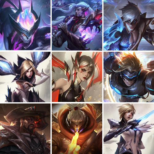 【重要皮肤】T1杰斯至臻 青花瓷千珏至臻 天龙之子伊泽瑞尔至臻 北极星钢影卡蜜尔至臻 心之钢永恩至臻 魔女阿卡丽至臻 魂蔷薇烈娜塔至臻 玉剑传说琴仙子至臻 斗魂觉醒萨科至臻 斗魂觉醒派克至臻 DRX亚托克斯至臻 墨之影武者亚索至臻 花仙使者卡特琳娜至臻 绝息圣堂厄运小姐至臻 剪纸仙灵希维尔至臻 青花瓷丽桑卓至臻 星之守护者辛德拉至臻 星之守护者艾克至臻 西部魔影猎天使恶魔泰隆至臻 青花瓷拉克丝至臻 神凰行者烈羽焰凰霞至臻 太空律动璐璐至臻 魔女乐芙兰至臻 真实伤害亚索至臻 真实伤害赛娜至臻 灵能特工伊泽瑞尔至臻 源计划逆流塞拉斯至臻 源计划阴劫至臻 黑夜使者凯隐至臻 神龙尊者均衡之龙沃利贝尔至臻 征服者贾克斯至臻 焰执事布兰德至臻 KDA一代卡莎至臻 KDA阿狸至臻 KDA阿卡丽至臻 烈焰美人薇恩至臻 星之守护者妮蔻至臻 源计划正义艾瑞莉娅至臻 真实伤害奇亚娜至臻 绒毛菲兹至臻 玉剑传说武剑仙至臻 殿堂传奇乐芙兰 灰烬征服者潘森 海克斯科技斯维因 新卧虎藏龙贾克斯 水晶掠夺者卡兹克 零之枪骑赫卡里姆 胜利剑圣易 胜利之王泰达米尔 胜利巨口克格莫 创星之灵璐璐 荣誉使者玛尔扎哈 勇敢的心德莱厄斯 电玩女神厄运小姐 星之守护者伊泽瑞尔 神凰行者幽羽玄凰萨勒芬妮 玉剑传说舞龙卫 玉剑传说翼剑仙 天龙之子斯莫德 剪纸仙灵艾瑞莉娅 替父从军花木兰 神龙烈焰金克丝 你看见过我的熊猫吗安妮 北辰之威内瑟斯 南天之怒沃里克 美猴王孙悟空 虎痴之拳蔚 张辽文远 纳财大帝塔姆 神龙之翼库奇 征服者贾克斯 王国机神青龙德莱文 王国机神朱雀蕾欧娜 王国机神苍狼瑟提 王国机神白虎贾克斯 王国机神玄武盖伦 福牛守护者安妮 福牛守护者阿利斯塔 福牛守护者嘉文四世 胜利女神瑟庄妮 甜心之羽霞 觅心之翼奎因 幽梦玫瑰辛德拉 水晶玫瑰斯维因 北极星猎人斯维因 寒冬精灵璐璐 雪球也能爆炸吉格斯 冰雪驯鹿波比 冰雪风暴希维尔 冬季仙境卡尔玛 持胡萝卜的雪人易 魄罗骑士瑟庄妮 夺命美人卡特琳娜 平安夜女神娑娜 圣诞糖果棒厄运小姐 魅惑女巫乐芙兰 魅惑女巫奈德丽 大魔法锅布里茨 死亡誓约维克托 勇敢的心德莱厄斯 泳池派对辛德拉 泳池派对厄运小姐 泳池派对塔里克 泳池派对格雷福斯 泳池派对布隆 电玩战魂赫卡里姆 穿星魔锋赵信 御星魔矢艾希 克格汪 DWG凯南 DWG蕾欧娜 DWG奈德丽 iG卡蜜尔 iG洛 iG卡莎 iG菲奥娜 SSG霞 SSG塔莉垭 SSG嘉文四世 SSG伊泽瑞尔 SKTT1烬 SKTT1辛德拉 SKTT1艾克 SKTT1瑞兹 SKTT1雷克顿 SSW雷恩加尔 SSW泰隆 SSW图奇 SSW辛吉德 SKTT1贾克斯 SKTT1劫 SKTT1婕拉 SKTT1李青 暗杀星奥莉安娜 暗杀星蒙多 暗杀星努努和威朗普 Fnatic库奇 Fnatic古拉加斯 Fnatic嘉文四世 Fnatic卡尔萨斯 冰雪节玛尔扎哈 冰雪节辛吉德 冰雪兽纳尔 防暴士兵格雷福斯 防暴士兵辛吉德 冠军典狱长锤石 冠军掠夺者卡兹克 冠军之隐劫 海贼瑞兹 胡桃夹子萨科 惊悚派对费德提克 警用试作体K9内瑟斯 密林猎手提莫 南瓜头费德提克 圣诞精灵崔丝塔娜 圣诞开心鬼提莫 圣诞狂欢努努和威朗普 圣诞老人古拉加斯 圣诞玩偶波比 圣诞驯鹿克格莫 卧虎藏龙贾克斯 无头骑士赫卡里姆 喜庆之树茂凯 邪恶圣诞老人维迦 幸福女神乐芙兰 雪球也能爆炸吉格斯 雪装奈德丽 野兽猎人德莱文 野兽猎人瑟庄妮 野兽猎人泰达米尔 英勇玩具兵普朗克 征服者韦鲁斯 暗影沃里克 魅惑女巫波比 战场BOSS吉格斯 阿木木主人不要我了 2022全球总决赛阿兹尔 波比的巧克力工坊 都铎王朝图奇 神凰行者瑞羽圣凰艾尼维亚 胜利凤凰艾尼维亚 未来战士伊泽瑞尔 绝息圣堂洛