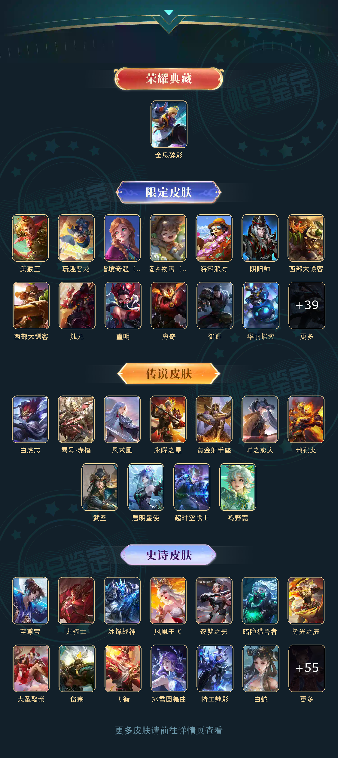 贵族等级无,英雄数量121,典藏皮肤数1,皮肤数量246,