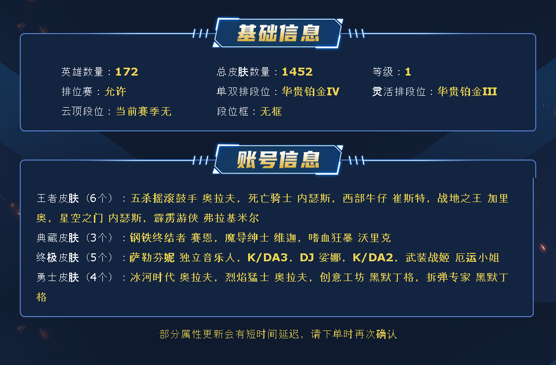 ~~喜欢记得收藏~~可排位~~1238皮全英雄丨831原皮407炫彩~~租之前尽量查一下游戏ID,确保段位是您需要的,避免浪费您的时间~~请勿挂机逃跑故意送人头,谢谢合作,谢谢~~