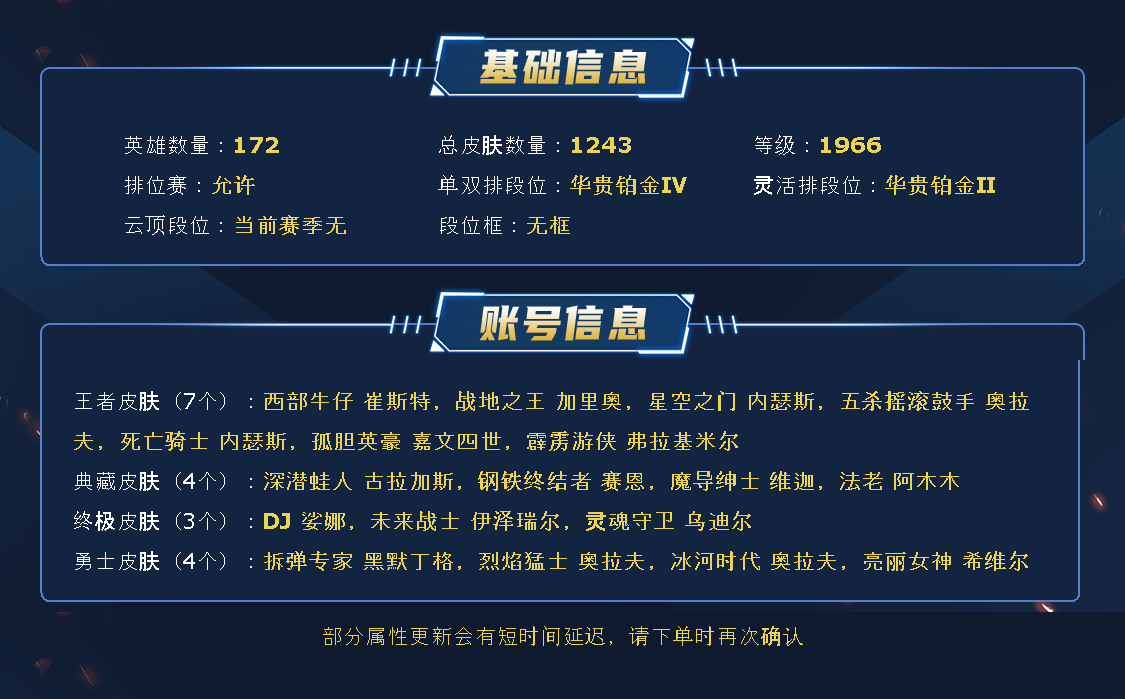 ~~喜欢记得收藏~~可排位~~1129皮全英雄丨838原皮291炫彩~~租之前尽量查一下游戏ID,确保段位是您需要的,避免浪费您的时间~~请勿挂机逃跑故意送人头,谢谢合作,谢谢~~
