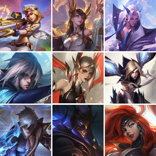 【重要皮肤】黑色玫瑰假面舞会卡特琳娜至臻 魔域梦魇泽丽至臻 T1杰斯至臻 北极星钢影卡蜜尔至臻 魔女阿卡丽至臻 剪纸仙灵希维尔至臻 至高天奎桑提至臻 西部魔影猎天使恶魔泰隆至臻 战斗学院蕾欧娜至臻 真实伤害亚索至臻 真实伤害赛娜至臻 源计划逆流塞拉斯至臻 源计划阴劫至臻 黑夜使者凯隐至臻 神龙尊者均衡之龙沃利贝尔至臻 征服者贾克斯至臻 KDA二代卡莎至臻 KDA一代卡莎至臻 KDA伊芙琳至臻 烈焰美人薇恩至臻 烈焰美人薇恩2022至臻 电玩女神凯特琳至臻 电玩女神凯特琳2022至臻 魅惑女巫厄运小姐至臻 星之守护者妮蔻至臻 星之守护者妮蔻2022至臻 源计划正义艾瑞莉娅至臻 源计划正义艾瑞莉娅2022至臻 绒毛菲兹至臻 玉剑传说武剑仙至臻 玉剑传说武剑仙2022至臻 腥红之月亚托克斯至臻 腥红之月亚托克斯2022至臻 未来战士锤石至臻 未来战士锤石2022至臻 殿堂传奇乐芙兰 灰烬守护者慎 灰烬骑士莫德凯撒 灰烬骑士派克 海克斯科技雷克顿 海克斯科技克格莫 海克斯科技斯维因 海克斯科技波比 海克斯科技嘉文四世 海克斯科技阿木木 暗星科加斯 零之枪骑赫卡里姆 摄魂使者薇恩 新创战纪希维尔 胜利剑圣易 胜利女神娑娜 胜利之王泰达米尔 胜利巨口克格莫 舞会公主安妮 星之守护者伊泽瑞尔 玉剑传说无影 玉剑传说舞剑仙 点心宝贝阿木木 天龙之子斯莫德 替父从军花木兰 碧玉之牙卡西奥佩娅 你看见过我的熊猫吗安妮 北辰之威内瑟斯 美猴王孙悟空 定海神珍孙悟空 玉净夜叉凯特琳 广寒仙子嫦娥 虎痴之拳蔚 纳财大帝塔姆 神龙之翼库奇 胜利女神奥莉安娜 胜利枪神卢锡安 胜利之剑亚托克斯 水晶玫瑰阿克尚 甜心之翎洛 觅心游侠卢锡安 觅心女王艾希 觅心萝莉金克丝 觅心猎手薇恩 北极星钢影卡蜜尔 圣诞老人布隆 冰雪风暴希维尔 魄罗骑士瑟庄妮 夺命美人卡特琳娜 平安夜女神娑娜 圣诞糖果棒厄运小姐 魅惑女巫莫甘娜 魅惑女巫奈德丽 海之歌萨勒芬妮 海之歌泽丽 泳池派对凯特琳 泳池派对佐伊 泳池派对格雷福斯 泳池派对李青 泳池派对雷克顿 电玩战魂赫卡里姆 送披萨的小姐姐希维尔 克格汪 制胜金靴李青 iG卡蜜尔 iG卡莎 iG艾瑞莉娅 SSG伊泽瑞尔 SKTT1烬 SKTT1辛德拉 SKTT1艾克 SKTT1阿利斯塔 SKTT1卡莉丝塔 SKTT1瑞兹 SKTT1阿兹尔 SKTT1伊莉丝 SKTT1雷克顿 SSW锤石 SSW雷恩加尔 SSW泰隆 SSW图奇 SSW辛吉德 SKTT1贾克斯 SKTT1劫 SKTT1婕拉 SKTT1李青 暗杀星蒙多 暗杀星伊泽瑞尔 暗杀星慎 Fnatic迦娜 Fnatic库奇 Fnatic嘉文四世 Fnatic卡尔萨斯 冰雪节辛吉德 防暴机器人布里茨 防暴士兵格雷福斯 防暴士兵辛吉德 防暴天使凯尔 冠军典狱长锤石 冠军掠夺者卡兹克 冠军之刃锐雯2016 冠军之血希瓦娜 冠军之隐劫 春晖神女艾希 鬼影森森茂凯 鬼影重重魔腾 胡桃夹子萨科 警用试作体K9内瑟斯 密林猎手提莫 南瓜头费德提克 圣诞精灵崔丝塔娜 圣诞开心鬼提莫 圣诞狂欢努努和威朗普 圣诞老人古拉加斯 圣诞玩偶波比 圣诞驯鹿克格莫 糖果使徒费德提克 外星装甲库奇 无头骑士赫卡里姆 喜庆之树茂凯 邪恶圣诞老人维迦 幸福女神乐芙兰 雪默丁格 野兽猎人瑟庄妮 永恒之森乐芙兰 征服者卡尔玛 征服者韦鲁斯 暗影沃里克 冠军之箭艾希 战场BOSS吉格斯 阿木木主人不要我了 波比的巧克力工坊 都铎王朝图奇 十五周年纪念希维尔 十周年纪念安妮 源代码乐芙兰 神凰行者瑞羽圣凰艾尼维亚 胜利凤凰艾尼维亚 武装战姬厄运小姐