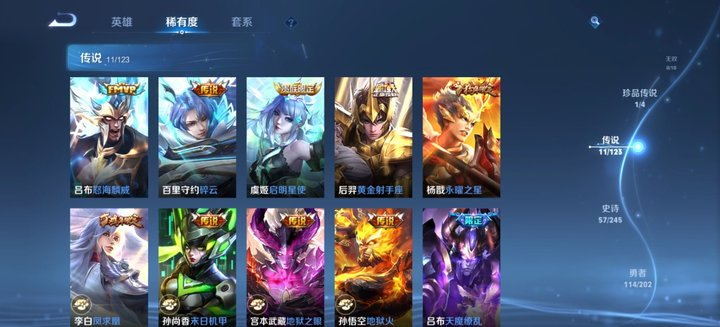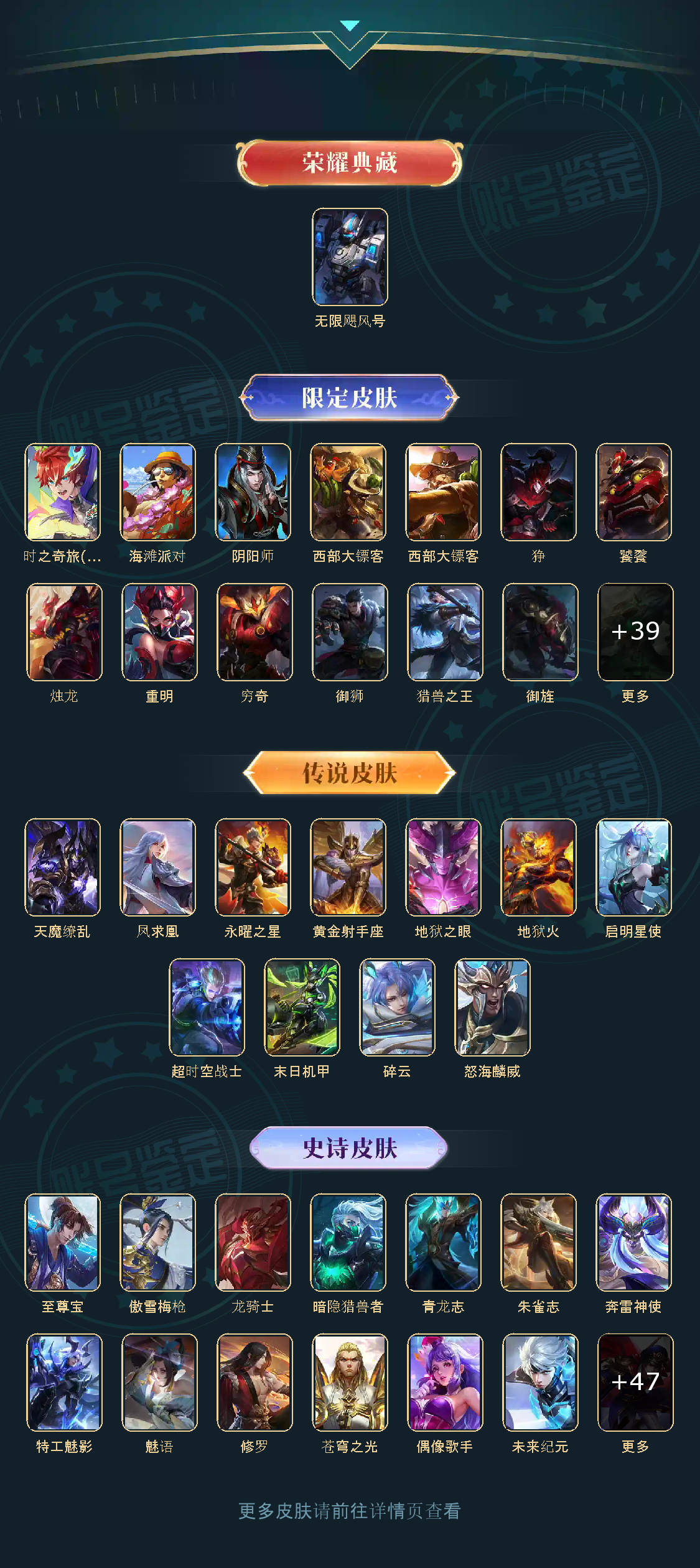 贵族等级V2,英雄数量122,典藏皮肤数1,皮肤数量250,天魔缭乱/凤求凰/无限飓风号