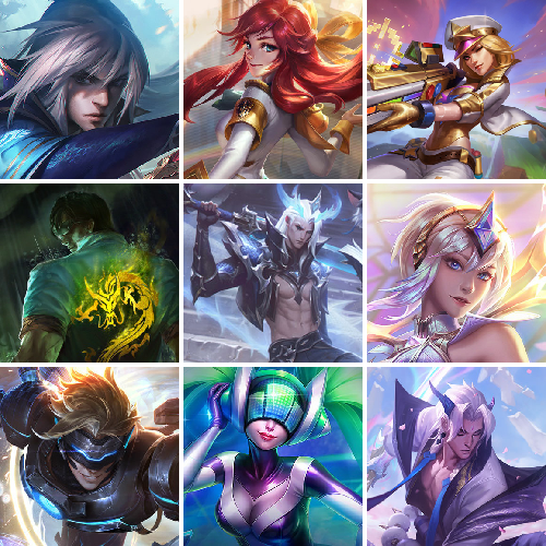 【重要皮肤】心之钢永恩至臻 星之守护者辛德拉至臻 幻灵战斗猫金克丝至臻 魅惑女巫莫甘娜至臻 女帝黛安娜至臻 战斗学院蕾欧娜至臻 太空律动璐璐至臻 魔女婕拉至臻 魔女乐芙兰至臻 奥术师佐伊至臻 未来战士卢锡安至臻 真实伤害亚索至臻 真实伤害赛娜至臻 星之守护者索拉卡至臻 灵魂莲华提莫至臻 灵能特工伊泽瑞尔至臻 福牛守护者菲奥娜至臻 源计划逆流塞拉斯至臻 王国机神玄武盖伦至臻 暗星墨菲特至臻 神龙尊者炎龙瑟提至臻 黑夜使者凯隐至臻 征服者贾克斯至臻 KDA二代卡莎至臻 KDA一代卡莎至臻 KDA阿狸至臻 KDA阿狸2022至臻 KDA伊芙琳至臻 KDA伊芙琳2022至臻 战斗学院拉克丝至臻 战斗学院拉克丝2022至臻 电玩女神凯特琳至臻 源计划正义艾瑞莉娅至臻 源计划正义艾瑞莉娅2022至臻 真实伤害奇亚娜至臻 绒毛菲兹至臻 绒毛菲兹2022至臻 玉剑传说武剑仙至臻 玉剑传说武剑仙2022至臻 腥红之月亚托克斯至臻 腥红之月亚托克斯2022至臻 未来战士锤石至臻 未来战士锤石2022至臻 黑夜使者李青至臻 黑夜使者李青2022至臻 海克斯科技安妮 海克斯科技瑟庄妮 海克斯科技雷克顿 海克斯科技斯维因 海克斯科技吉格斯 海克斯科技波比 海克斯科技阿利斯塔 海克斯科技阿木木 海克斯科技拉莫斯 海克斯科技魔腾 暗星科加斯 黎明使者卡尔玛 恐惧新星德莱厄斯 零之枪骑赫卡里姆 摄魂使者薇恩 新创战纪希维尔 青年瑞兹 胜利之王泰达米尔 战熊骑士瑟庄妮 创星之灵璐璐 荣誉使者玛尔扎哈 养蜂人辛吉德 勇敢的心德莱厄斯 电玩女神厄运小姐 电玩勇者锐雯 电玩女神阿狸 玉剑传说无影 神凰行者幽羽玄凰萨勒芬妮 龙的传人李青 银龙裁决泰隆 天龙之子斯莫德 替父从军花木兰 神龙烈焰金克丝 碧玉之牙卡西奥佩娅 古琴余韵娑娜 春晖神女拉克丝 你看见过我的熊猫吗安妮 北辰之威内瑟斯 南天之怒沃里克 美猴王孙悟空 定海神珍孙悟空 玉净夜叉凯特琳 紫金罗刹莫甘娜 广寒仙子嫦娥 虎痴之拳蔚 张辽文远 司马懿仲达 金猪烈焰瑟庄妮 纳财大帝塔姆 醒狮克格莫 神龙之翼库奇 征服者贾克斯 王国机神苍狼瑟提 胜利女神瑟庄妮 胜利女神奥莉安娜 胜利枪神格雷福斯 胜利枪神卢锡安 胜利之剑亚托克斯 水晶玫瑰阿克尚 碎心之拳蔚 甜心之羽霞 甜心宝贝娑娜 觅心之翼奎因 幽梦玫瑰辛德拉 冬境仙灵索拉卡 寒冬精灵璐璐 冬季仙境奥莉安娜 雪球也能爆炸吉格斯 圣诞捣蛋鬼金克丝 圣诞老人布隆 圣诞老人德莱文 冰雪风暴希维尔 冬季仙境卡尔玛 冰雪女神辛德拉 魄罗骑士瑟庄妮 夺命美人卡特琳娜 平安夜女神娑娜 圣诞糖果棒厄运小姐 魅惑女巫莫甘娜 魅惑女巫奈德丽 大魔法锅布里茨 大魔王提莫 克烈古拉伯爵 南瓜头王子阿木木 勇敢的心德莱厄斯 海之歌永恩 泳池派对佐伊 泳池派对奥莉安娜 泳池派对塔莉垭 泳池派对厄运小姐 泳池派对塔里克 泳池派对菲奥娜 泳池派对格雷福斯 泳池派对李青 泳池派对蕾欧娜 泳池派对雷克顿 泳池派对瑟提 电玩战魂赫卡里姆 穿星魔锋赵信 御星魔矢艾希 送披萨的小姐姐希维尔 鸡里奥 克格汪 DRX千珏 EDG佛耶戈 iG洛 iG乐芙兰 SSG霞 SSG洛 SSG嘉文四世 SSG伊泽瑞尔 SKTT1扎克 SKTT1烬 SKTT1辛德拉 SKTT1娜美 SKTT1奥拉夫 SKTT1阿利斯塔 SKTT1卡莉丝塔 SKTT1阿兹尔 SKTT1伊莉丝 SKTT1雷克顿 SSW锤石 SSW雷恩加尔 SSW泰隆 SSW图奇 SSW辛吉德 SKTT1贾克斯 SKTT1劫 SKTT1婕拉 SKTT1李青 SKTT1薇恩 暗杀星蒙多 暗杀星努努和威朗普 暗杀星伊泽瑞尔 暗杀星慎 Fnatic迦娜 Fnatic古拉加斯 Fnatic嘉文四世 Fnatic卡尔萨斯 冰雪节格雷福斯 冰雪节玛尔扎哈 冰雪节辛吉德 冰雪兽纳尔 防暴士兵格雷福斯 防暴士兵辛吉德 防暴天使凯尔 钢铁之翼艾尼维亚 冠军典狱长锤石 冠军掠夺者卡兹克 冠军之血希瓦娜 冠军之隐劫 冠军之志瑞兹 鬼影森森茂凯 鬼影重重魔腾 海贼瑞兹 胡桃夹子萨科 惊悚派对阿木木 警用试作体K9内瑟斯 密林猎手提莫 南瓜头费德提克 圣诞精灵崔丝塔娜 圣诞开心鬼提莫 圣诞狂欢基兰 圣诞狂欢努努和威朗普 圣诞老人古拉加斯 圣诞玩偶波比 圣诞驯鹿克格莫 外星装甲库奇 无头骑士赫卡里姆 喜庆之树茂凯 邪恶圣诞老人维迦 幸福女神乐芙兰 雪默丁格 雪球也能爆炸吉格斯 雪装奈德丽 野兽猎人德莱文 野兽猎人瑟庄妮 野兽猎人泰达米尔 英勇玩具兵普朗克 永恒之森乐芙兰 勇者阿狸 勇者奈德丽 征服者卡尔玛 征服者诺提勒斯 征服者韦鲁斯 暗影沃里克 阿木木主人不要我了 波比的巧克力工坊 都铎王朝图奇 十周年纪念安妮 源代码乐芙兰 神凰行者瑞羽圣凰艾尼维亚 DJ娑娜 大元素使拉克丝 灵魂守卫乌迪尔 未来战士伊泽瑞尔 武装战姬厄运小姐 绝息圣堂洛