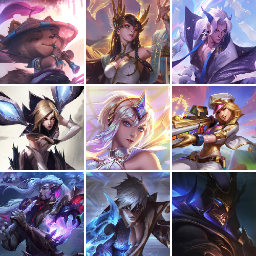 【重要头像】云顶战斗学院伊泽瑞尔 云顶古琴娑娜 爱意绵绵 觅心游侠卢锡安 觅心之翼奎因 春晖神女拉克丝 小希 青花瓷拉克丝炫彩 青花瓷拉克丝 KDA萨勒芬妮 幻灵战斗队长厄运小姐炫彩 灵魂莲华阿狸炫彩 灵魂莲华阿狸 星守金克丝炫彩 灵魂莲华莉莉娅 灵魂莲华卡西奥佩娅炫彩 灵魂莲华卡西奥佩娅 青花瓷伊泽瑞尔 可爱安妮 剪纸仙灵艾瑞莉娅 烈焰美人薇恩 招财进宝提莫 此志无双羽饰骑士 不错哦 至臻剪纸仙灵希维尔 至臻青花瓷丽桑卓 至臻战斗学院蕾欧娜 至臻灵魂莲华提莫 至臻魔女婕拉