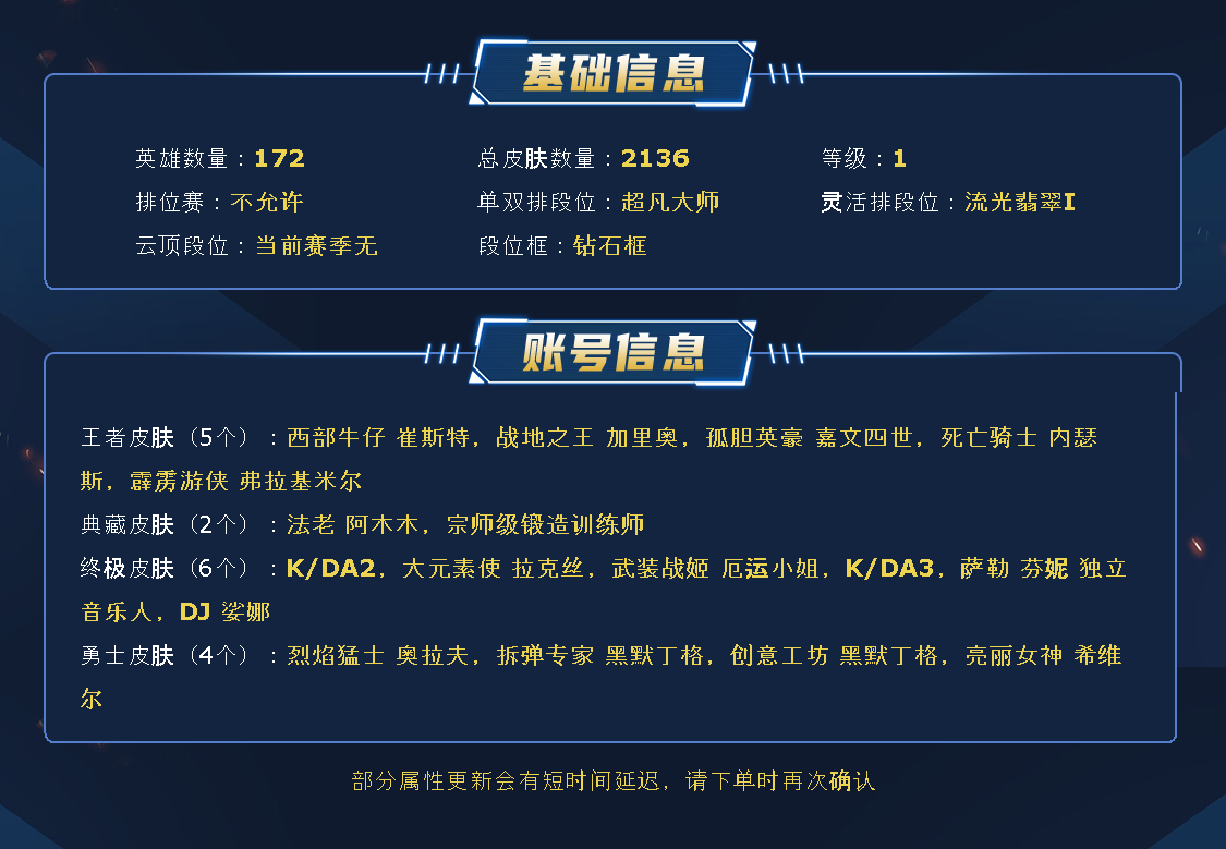 【联盟四区】2000皮肤♥双千皮妹妹号♥钻一禁排♥乱玩4吗♥乱斗2000分♥玉剑传说丨灵魂莲华