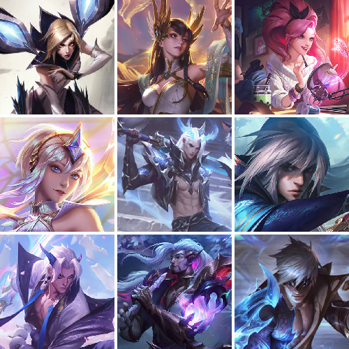【重要皮肤】魔女阿卡丽至臻 青花瓷丽桑卓至臻 太空律动魔音海妖娜美至臻 海珀利安小队X09星环灵风迦娜至臻 西部魔影猎天使恶魔泰隆至臻 幻灵战斗猫金克丝至臻 女帝黛安娜至臻 太空律动璐璐至臻 魔女婕拉至臻 魔女乐芙兰至臻 奥术师佐伊至臻 真实伤害亚索至臻 真实伤害赛娜至臻 灵魂莲华提莫至臻 灵能特工伊泽瑞尔至臻 源计划逆流塞拉斯至臻 源计划阴劫至臻 暗星墨菲特至臻 神龙尊者炎龙瑟提至臻 黑夜使者凯隐至臻 神龙尊者均衡之龙沃利贝尔至臻 飞升战神潘森至臻 焰执事布兰德至臻 KDA二代卡莎至臻 KDA一代卡莎至臻 KDA阿狸至臻 KDA伊芙琳至臻 星之守护者妮蔻至臻 真实伤害奇亚娜至臻 绒毛菲兹至臻 玉剑传说武剑仙至臻 玉剑传说武剑仙2022至臻 未来战士锤石至臻 未来战士锤石2022至臻 黑夜使者李青至臻 灰烬骑士派克 海克斯科技安妮 海克斯科技雷克顿 海克斯科技克格莫 海克斯科技吉格斯 海克斯科技阿利斯塔 海克斯科技崔丝塔娜 水晶圣骑蕾欧娜 星之守护者塔莉垭 永恒之森奥恩 暗星科加斯 黎明使者卡尔玛 恐惧新星德莱厄斯 零之枪骑赫卡里姆 摄魂使者薇恩 胜利剑圣易 胜利女神娑娜 胜利之王泰达米尔 胜利巨口克格莫 创星之灵璐璐 荣誉使者玛尔扎哈 养蜂人辛吉德 勇敢的心德莱厄斯 电玩女神厄运小姐 电玩女神阿狸 星之守护者伊泽瑞尔 玉剑传说无影 玉剑传说舞剑仙 玉剑传说神机花火 玉剑传说翼剑仙 银龙裁决泰隆 天龙之子斯莫德 替父从军花木兰 神龙烈焰金克丝 春晖神女拉克丝 你看见过我的熊猫吗安妮 美猴王孙悟空 定海神珍孙悟空 紫金罗刹莫甘娜 广寒仙子嫦娥 虎痴之拳蔚 张辽文远 司马懿仲达 金猪烈焰瑟庄妮 王国机神苍狼瑟提 王国机神白虎贾克斯 王国机神玄武盖伦 福牛守护者厄斐琉斯 胜利女神瑟庄妮 觅心萝莉金克丝 觅心猫猫悠米 双城之战2微光实验室辛吉德 冬季仙境奥莉安娜 圣诞老人布隆 冰雪风暴希维尔 冬季仙境卡尔玛 魄罗骑士瑟庄妮 平安夜女神娑娜 圣诞糖果棒厄运小姐 大魔法锅布里茨 死亡誓约劫 死亡誓约维克托 克烈古拉伯爵 南瓜头王子阿木木 勇敢的心德莱厄斯 海之歌泽丽 泳池派对佐伊 泳池派对普朗克 泳池派对辛德拉 泳池派对塔莉垭 泳池派对格雷福斯 泳池派对李青 泳池派对蕾欧娜 泳池派对瑟提 穿星魔锋赵信 御星魔矢艾希 鸡里奥 制胜金靴李青 EDG佛耶戈 EDG佐伊 DWG奈德丽 FPX锤石 FPX普朗克 FPX墨菲特 iG卡莎 iG艾瑞莉娅 iG乐芙兰 SSG洛 SSG纳尔 SKTT1阿利斯塔 SKTT1卡莉丝塔 SKTT1雷克顿 SSW锤石 SSW图奇 SSW辛吉德 SKTT1贾克斯 SKTT1婕拉 SKTT1李青 暗杀星奥莉安娜 暗杀星蒙多 暗杀星努努和威朗普 Fnatic古拉加斯 Fnatic卡尔萨斯 冰雪节格雷福斯 冰雪节玛尔扎哈 冰雪节辛吉德 冰雪兽纳尔 防暴士兵辛吉德 钢铁之翼艾尼维亚 冠军典狱长锤石 冠军之矛卡莉丝塔 冠军之血希瓦娜 冠军之隐劫 春晖山神墨菲特 鬼影森森茂凯 鬼影重重魔腾 惊悚派对费德提克 警用试作体K9内瑟斯 魅惑女巫娜美 密林猎手提莫 南瓜头费德提克 圣诞开心鬼提莫 圣诞狂欢基兰 圣诞老人古拉加斯 圣诞驯鹿克格莫 外星装甲库奇 无头骑士赫卡里姆 邪恶圣诞老人维迦 幸福女神乐芙兰 雪默丁格 野兽猎人德莱文 野兽猎人瑟庄妮 野兽猎人泰达米尔 勇者阿狸 勇者奈德丽 征服者卡尔玛 暗影沃里克 魅惑女巫菲奥娜 阿木木主人不要我了 2021全球总决赛嘉文四世 波比的巧克力工坊 地底世界崔斯特 都铎王朝图奇 十五周年纪念希维尔 源代码乐芙兰 神凰行者瑞羽圣凰艾尼维亚 胜利凤凰艾尼维亚 大元素使拉克丝 武装战姬厄运小姐 KDAALLOUT萨勒芬妮独立音乐人 KDAALLOUT萨勒芬妮明日新星 KDAALLOUT萨勒芬妮超级巨星 绝息圣堂洛