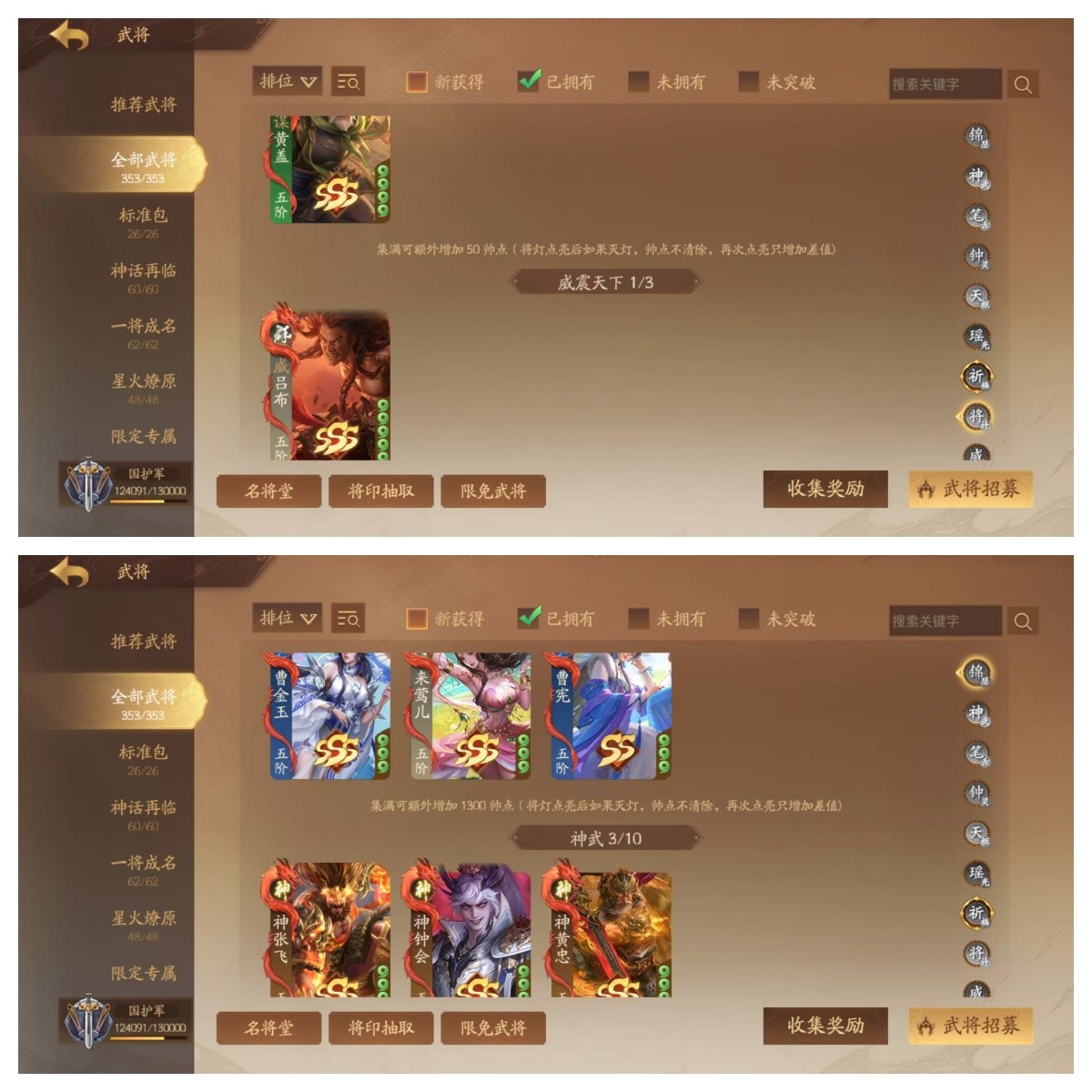 【全平台】 353将威吕布神钟会神黄忠神张飞山河动/袁胤庞宏二刘曹芳柏灵筠诸葛均曹金玉动周宣乐祢衡乐貂蝉乐蔡文姬