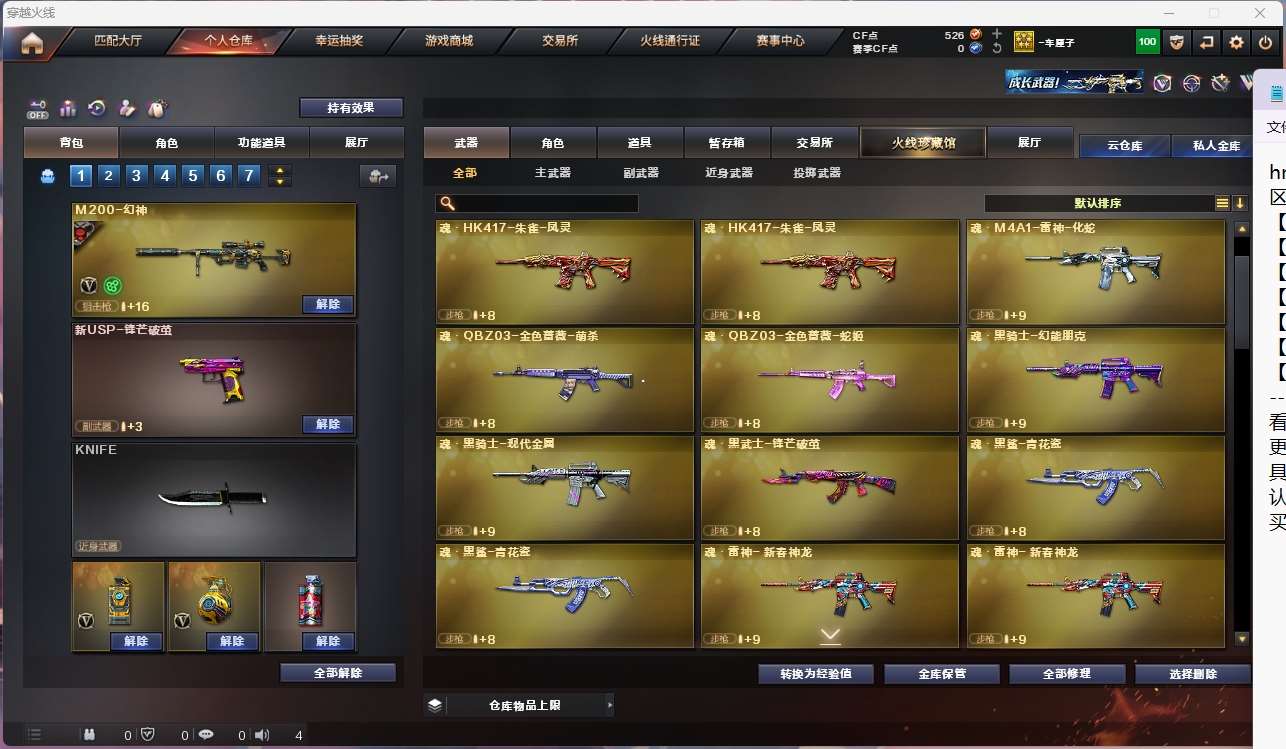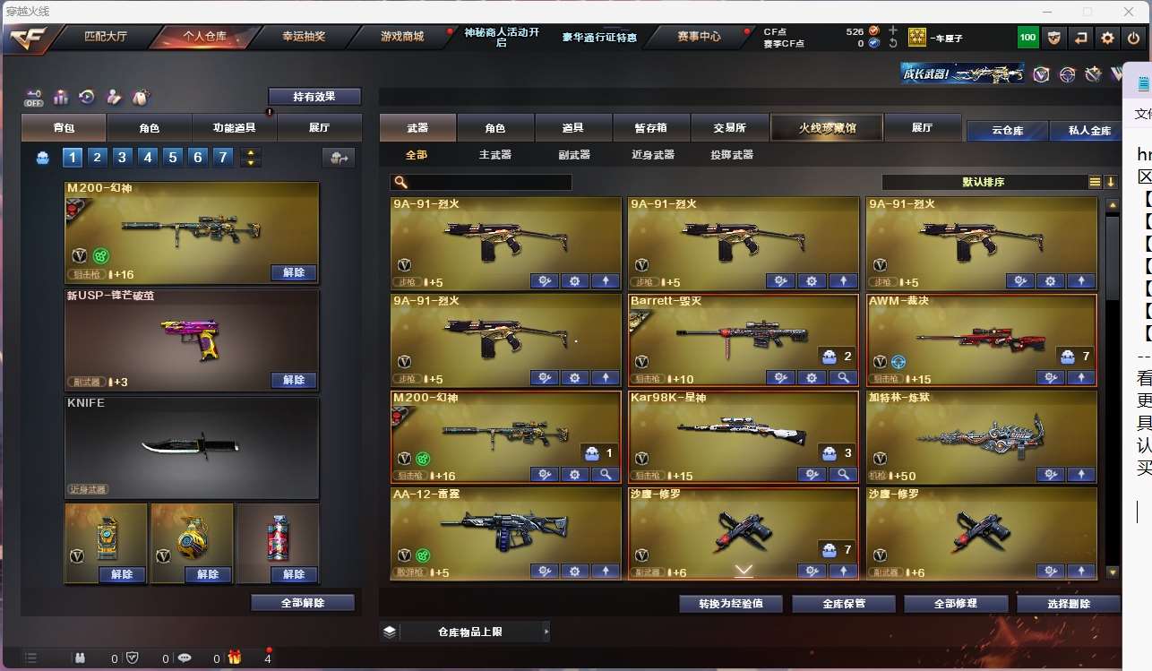 【m200幻神+冠军之幻+n9皮肤】【98k星神+音效卡】【传说梦魇】【qbz金色蔷薇】【火麒麟】【雷神+s18冠军】【黑骑士+卡】【毁灭+卡+女团+ag15冠军】【裁决】 【武器:炼狱】 【3手呛:修罗*2 王者之灵 】 【5刀具:屠龙 龙啸 尼泊尔雷霆 王者之击 】 【3雷套:雷霆雷 堕天神雷 雷霆王者雷 】 【音效卡: 星神音效卡 黑骑士音效卡 毁灭音效卡 】 【四防角色:鹰】