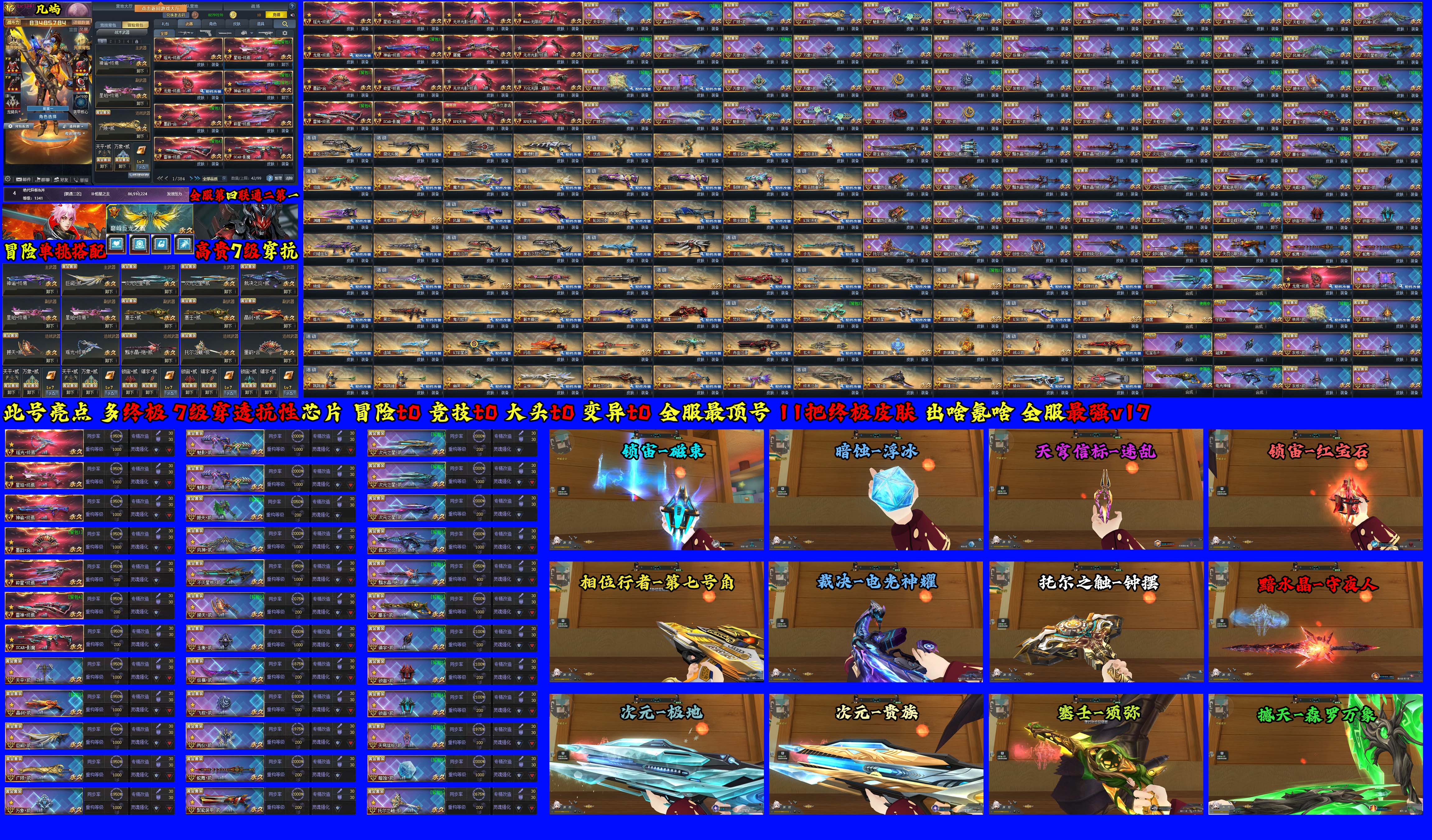 全服多款老终极皮肤:极地◆贵族◆第七号角◆须弥◆电光闪耀◆钟摆◆守夜人◆磁束◆红宝石◆浮冰◆