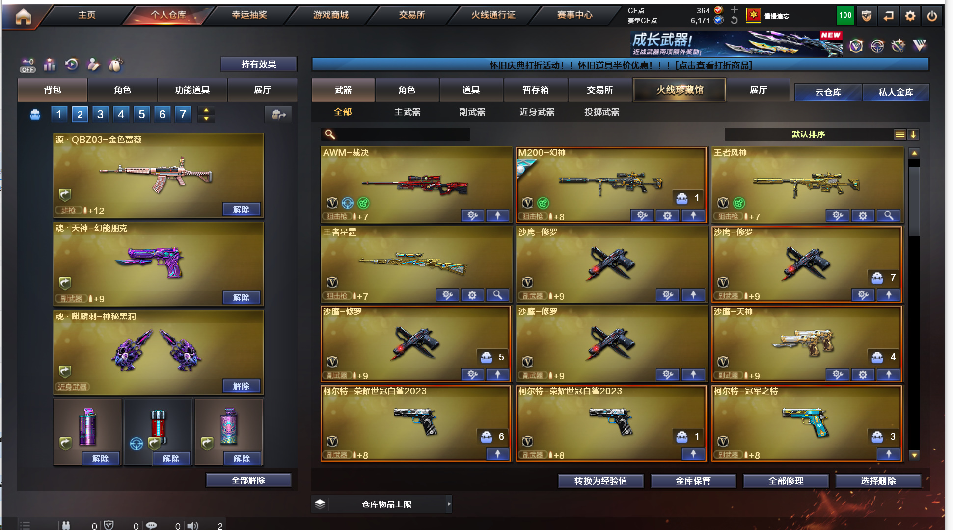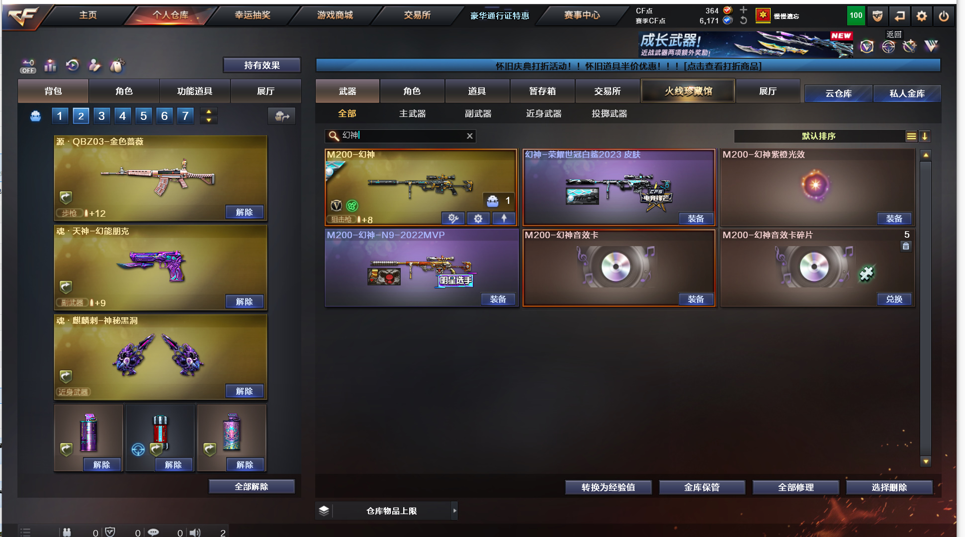 【m200幻神+幻神荣耀世冠白鲨2023+幻神n9+幻神音效卡】【柯尔特荣耀世冠2023+冠军之特】【炽芒蝶刃+炽芒蝶刃荣耀世冠白鲨2023】【觉醒王者风神】【觉醒王者星霆】【裁决】【白虎】【G36幻影】【隼+宙斯权杖+生存之眼+太极扇火凤】【金色蔷薇+金色蔷薇热带奇洋音效卡】【雷神荣耀之魄】【毁灭音效卡+雷神音效卡+火麒麟音效卡+昌龙怀旧音效卡】【满配奇洋探员】【火麒麟+雷神+毁灭】【炼狱秦师+cop白鲨+牛牛ak47】【闪光护目镜+超级背包】
