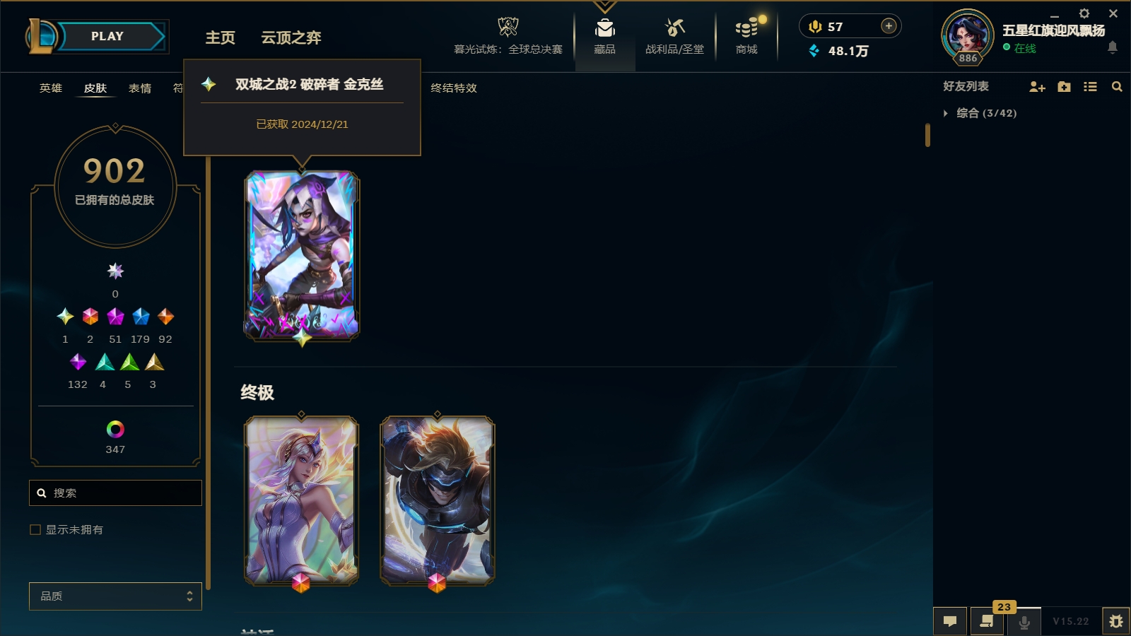 1700皮肤〓51至臻海克斯〓圣堂金克丝〓炽天使永恩〓摄魂龙瞎〓斩星哥特〓玉剑男女刀〓沄顶12神话