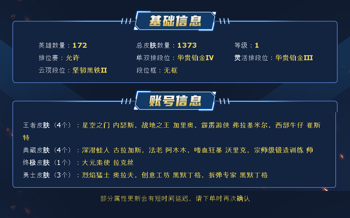 ~~喜欢记得收藏~~可排位~~1198皮全英雄~~租之前尽量查一下游戏ID,确保段位是您需要的,避免浪费您的时间~~请勿挂机逃跑故意送人头,谢谢合作,谢谢~~