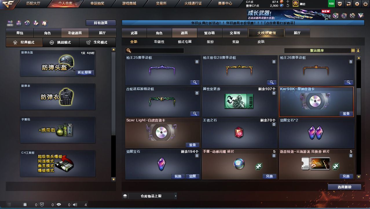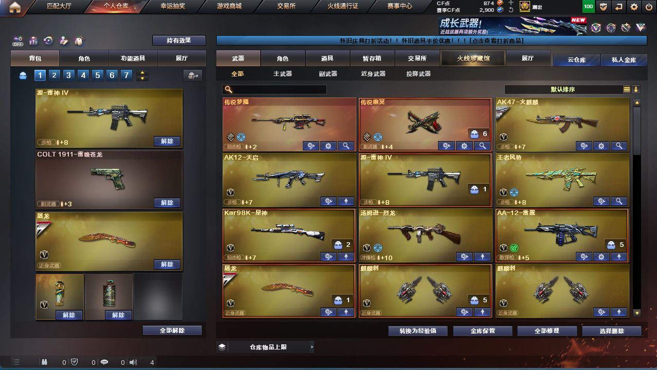 【传说梦魇】【传说幽冥】【星神+星神音效卡】【王者风神】【烈龙】【HK417-朱雀-蛇隐宗/Scar Light-马枪/QBZ03-斯沃特/C.A.T/迷你波特博士/迷你裂空之翼/魔能飞环-曼陀罗】【王者风势-觉醒版/AK12-天启/AK47-火麒麟./AA-12-雷霆/麒麟刺(2)/屠龙/唐刀-古蛇迷踪/】【幻神-星耀 皮肤/毁灭-星耀 皮肤/火麒麟-轻羽皮肤/炼狱-星空/屠龙-星耀 皮肤】【Scar Light-白虎音效卡】