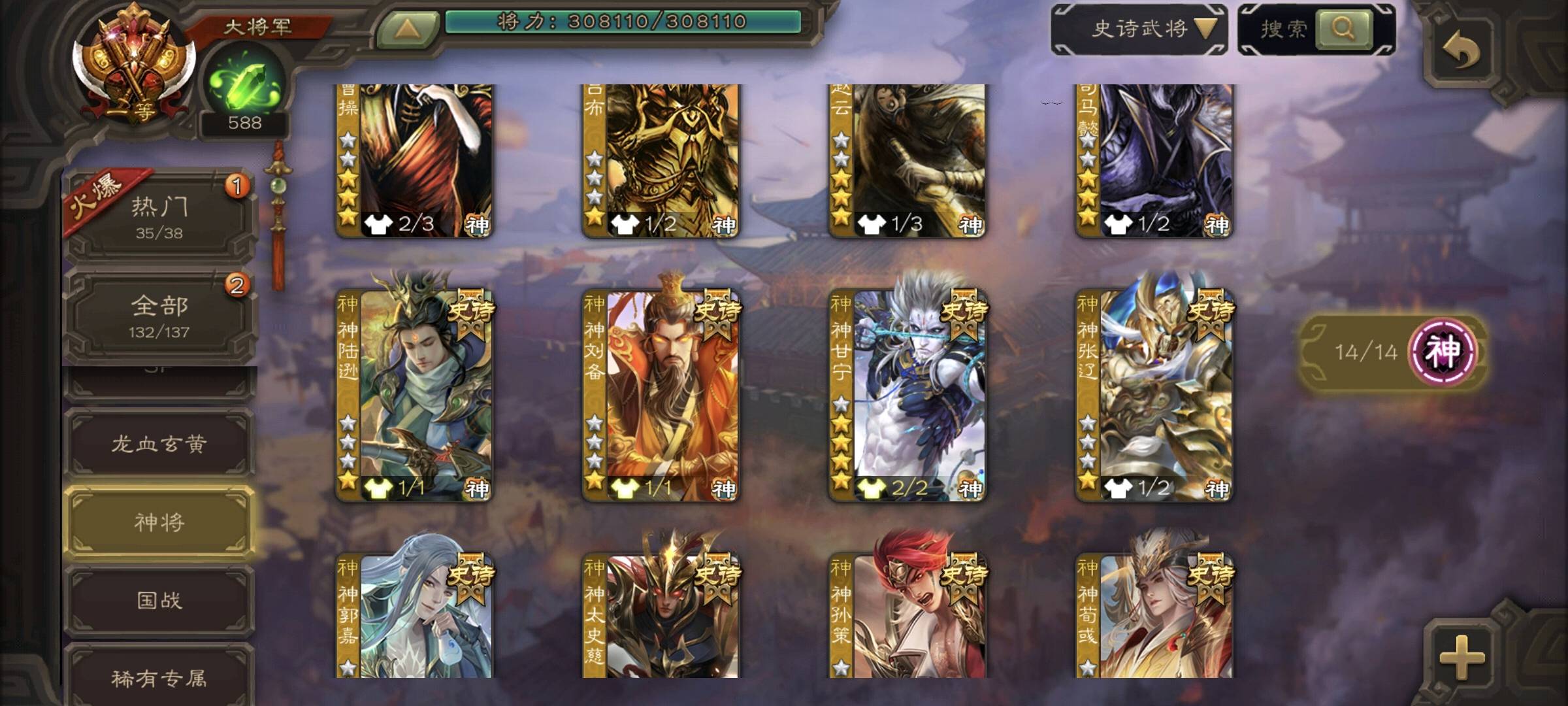 神——神吕布,神赵云,神司马懿,神陆逊,神刘备,神甘宁,神张辽,神太史慈,神荀彧,神曹操,神郭嘉,神孙策,神华佗,神鲁肃