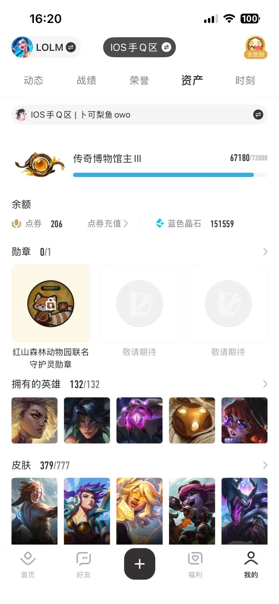 【苹果】 【允许排位】蓝钻15w+ 传奇博物馆主III 皮肤多 局内特效全 水晶花路 水晶礼堂 玫彩战旗 水晶花瓣都有