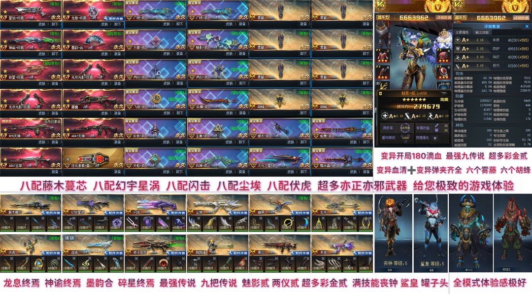 传说:星珀终焉龙息终焉、神谕终焉、墨韵合、碎星终焉、无尽终焉✖️2、屠魔、AK天神、AK主宰、无限GT